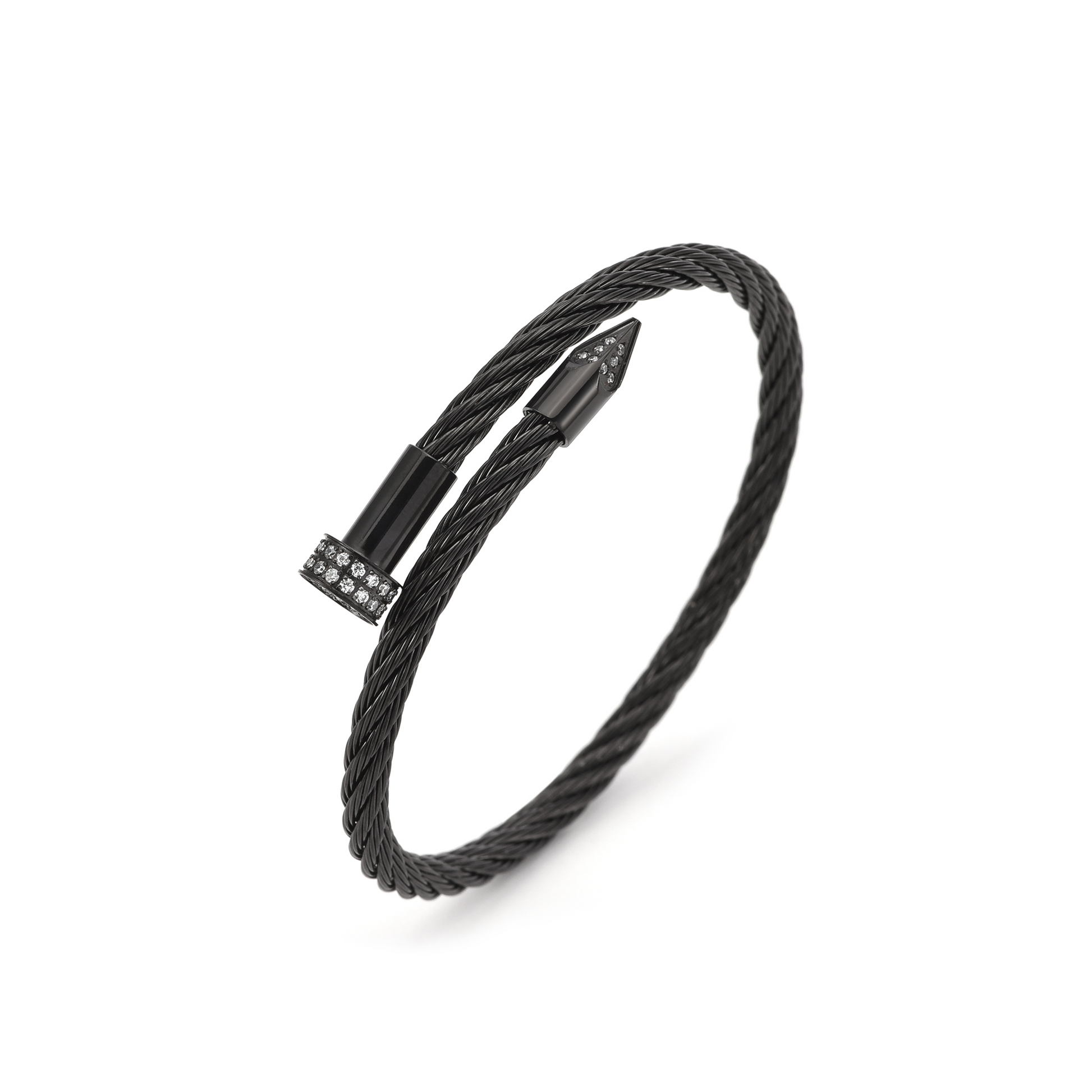 BG005B B.Tiff Black Pavé Pointe Cable Bangle Bracelet