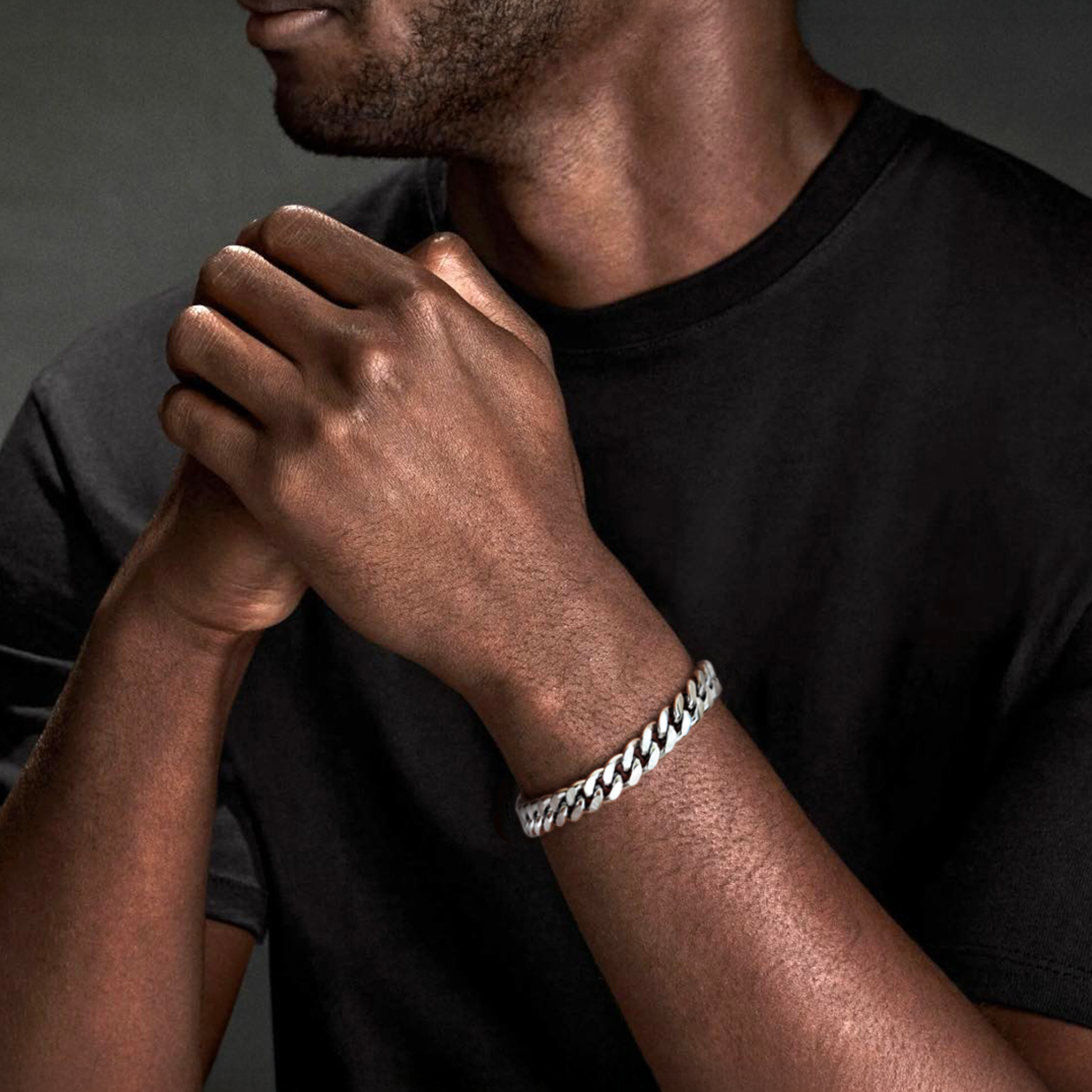 The 8mm Flat Cuban Link Bracelet uses delicate links to craft a lovely texture that easily accentuates you as a person along with any other pieces that you're wearing along with it. You'll find that B.Tiff's bracelets are made only from high-quality stainless steel that is soft on the skin, and resistant to any dimming or tarnishing. This solid cuban link comes with a triple lock clasp to keep chain securely around your wrist. This is a bracelet built to last for many years to come.