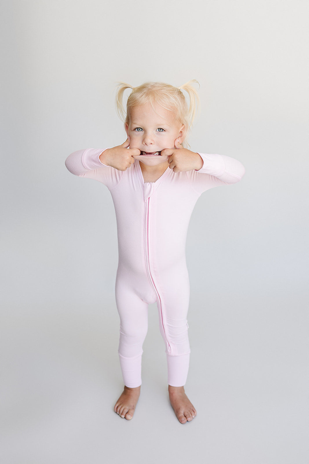 These convertible footies are designed for babies and growing toddlers. With our magical fold-over feet, your little one can seamlessly switch from dreamland to playtime without missing a beat. Perfect for those lazy mornings or spontaneous dance parties! Crafted with our exclusive bamboo fabric for a luxurious, buttery feel, these sleepwear essentials are designed to be naturally moisture-wicking, hypoallergenic, and breathable for the ultimate comfort experience. This product is a convertible footie style up to size 18-24 months. Our sleepwear is snug fitting with a nice stretch and we recommend sizing up +1 when ordering.
