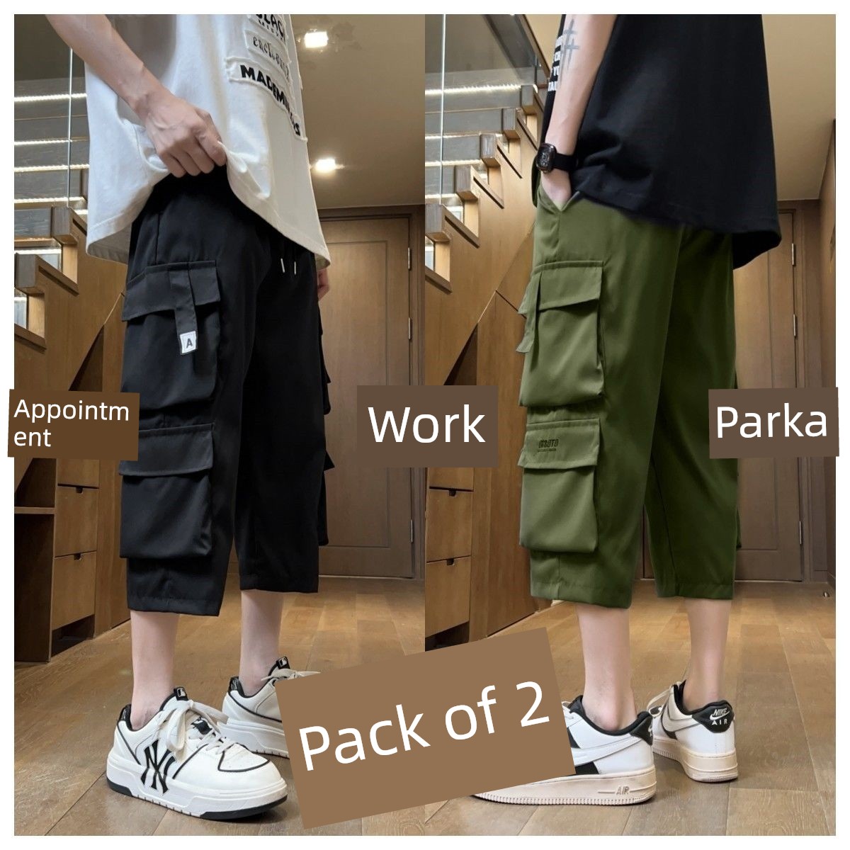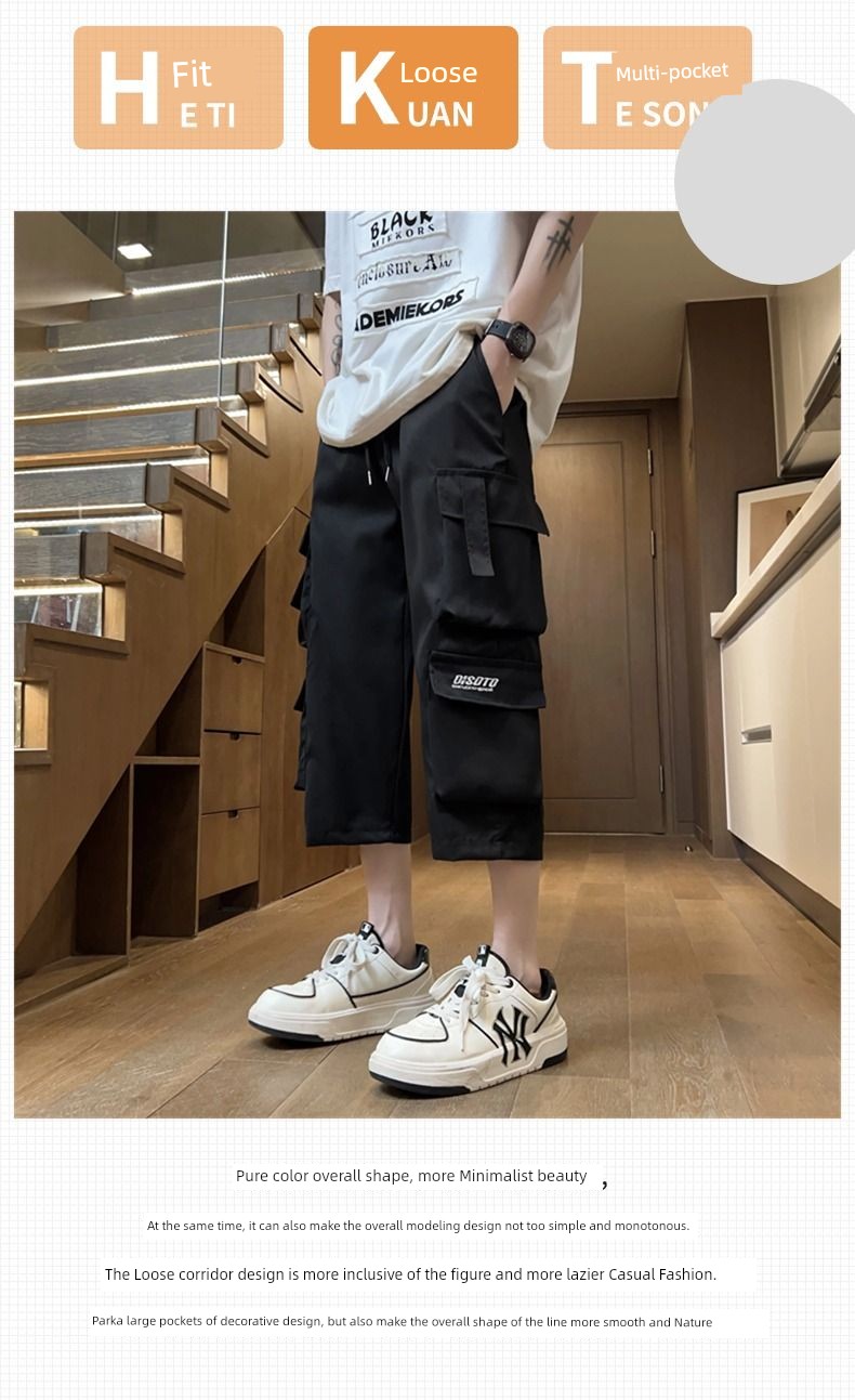 Cropped Shorts Cargo Multi-pockets Loose Men's Fashion Brand Summer American Outer Wear Thin Sports Casual Pants