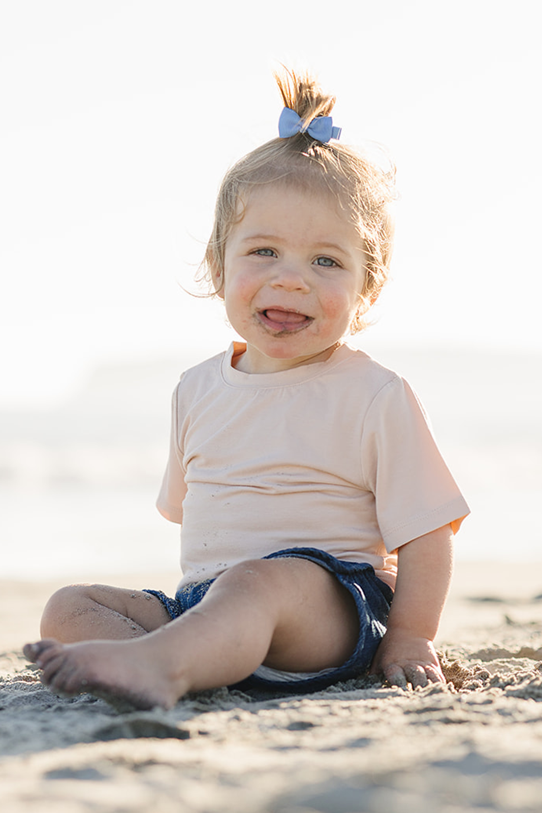 Introducing the Essential Tee, crafted from an ultra-soft Bamboo/Cotton blend that offers the perfect fabric weight for effortless style while keeping little ones cool and comfortable. Available in four unique colors inspired by the coastal aesthetic of Nantucket, this tee embodies the laid-back charm of coastal living.