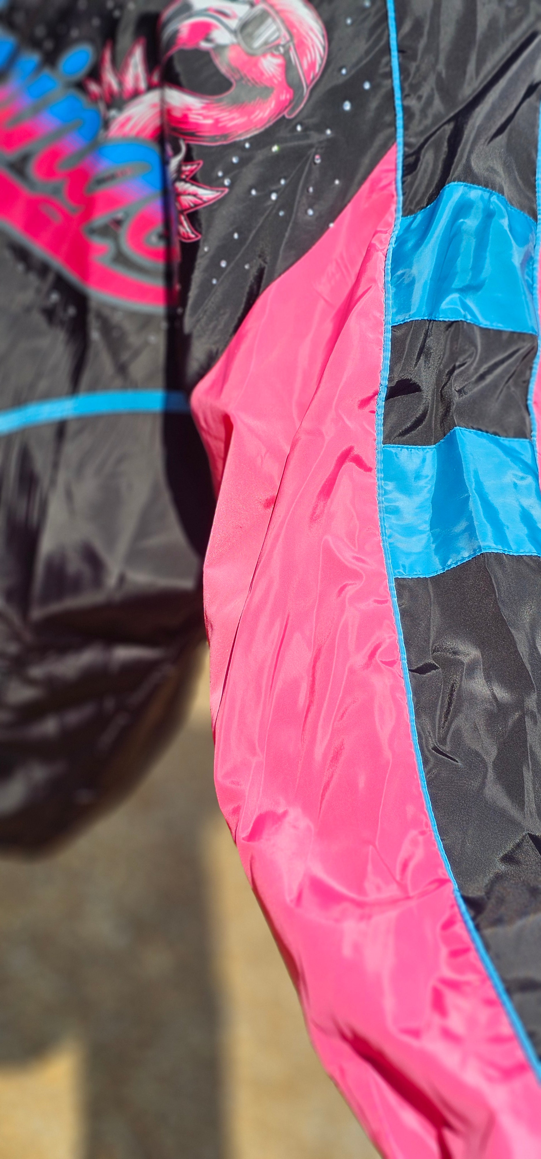 Cop it now and join the tribe—limited drop, don't sleep! Price: $120. Available in black base with pink pops. #MauiVibes #FlamingosTribe #BKStreetwear