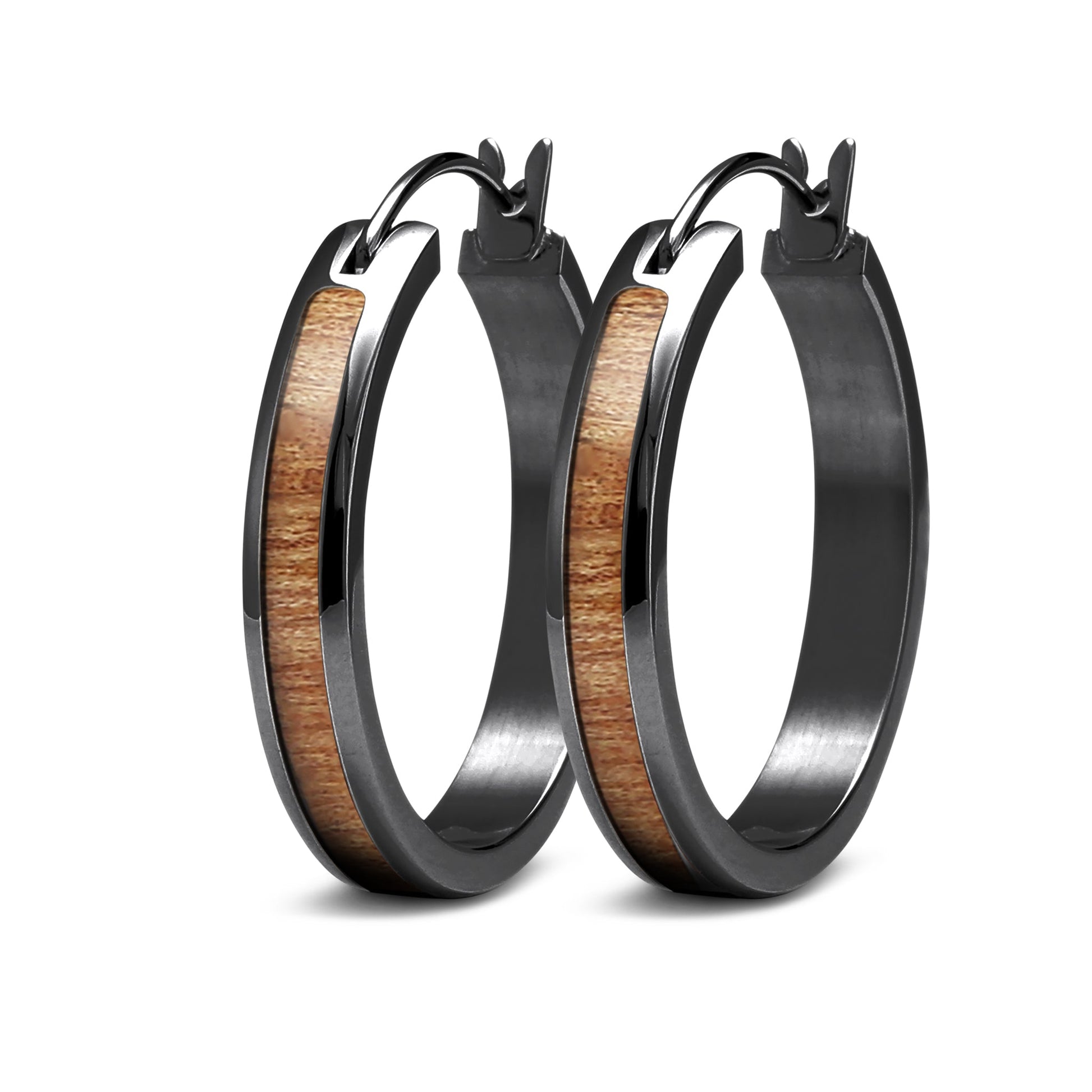 Australian Gum Burl (Tasmanian Oak/Stringybark) set in a Gunmetal plated surgical stainless steel 25mm hoop earring.