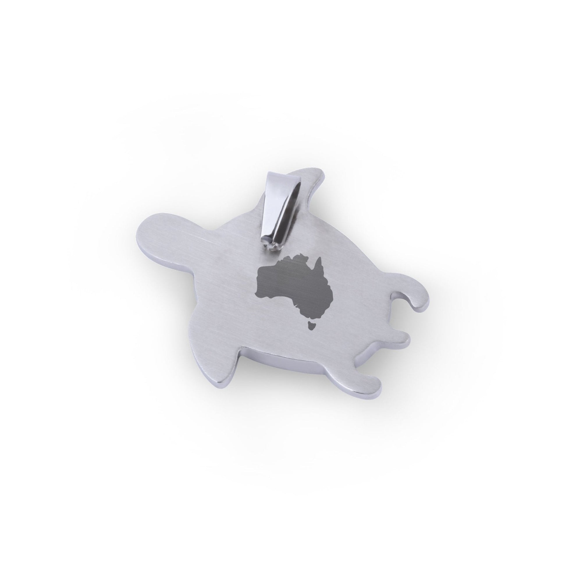 Stainless steel turtle pendant inlaid with Australian Jarrah wood.